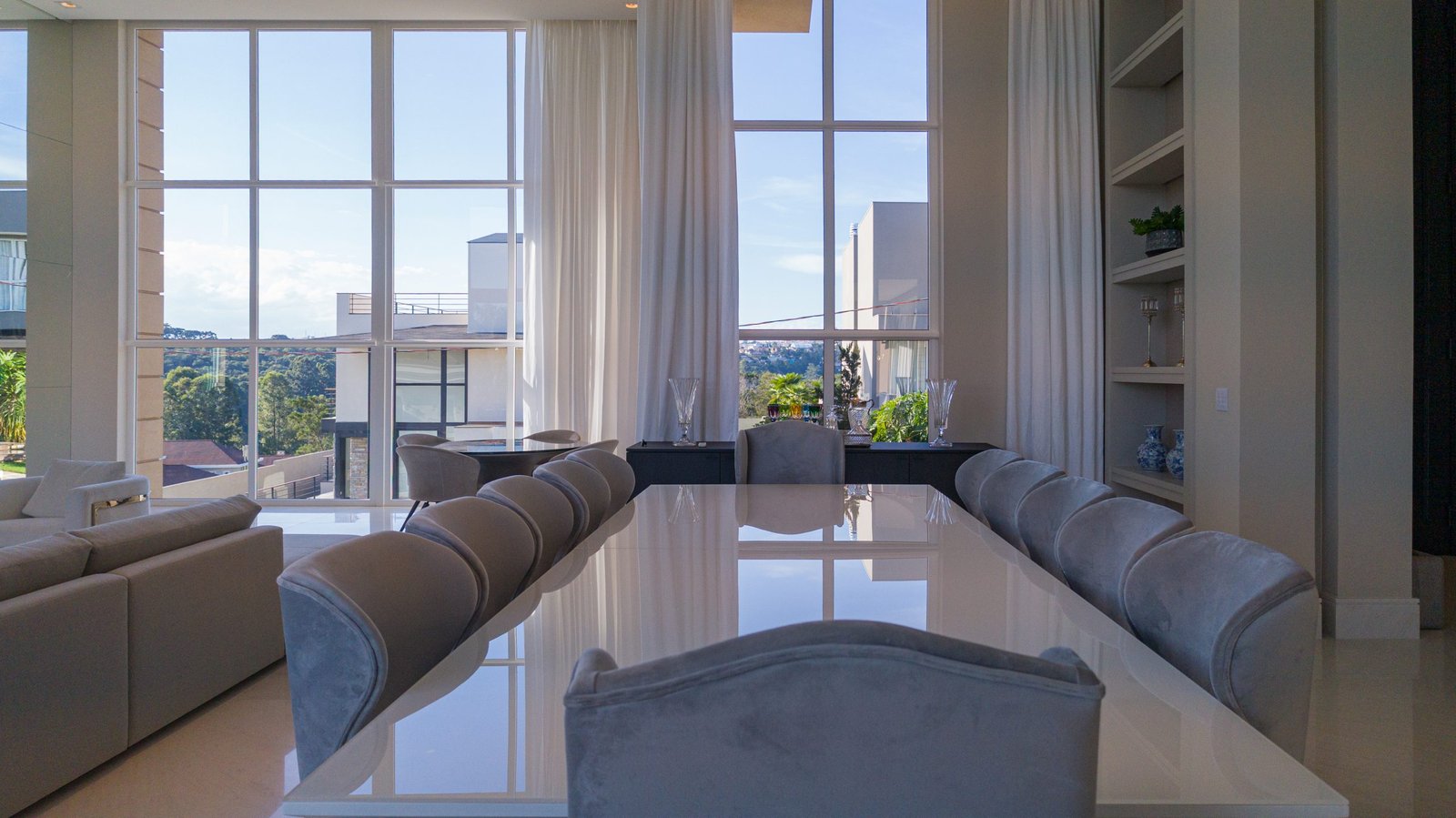 Quando se fala em acústica, os vidros duplos isolam até 35 decibéis. Em ambientes com estruturas amplas, e que buscam aproveitamento de luz natural e amplitude, também é possível optar pelo isolamento termoacústico.